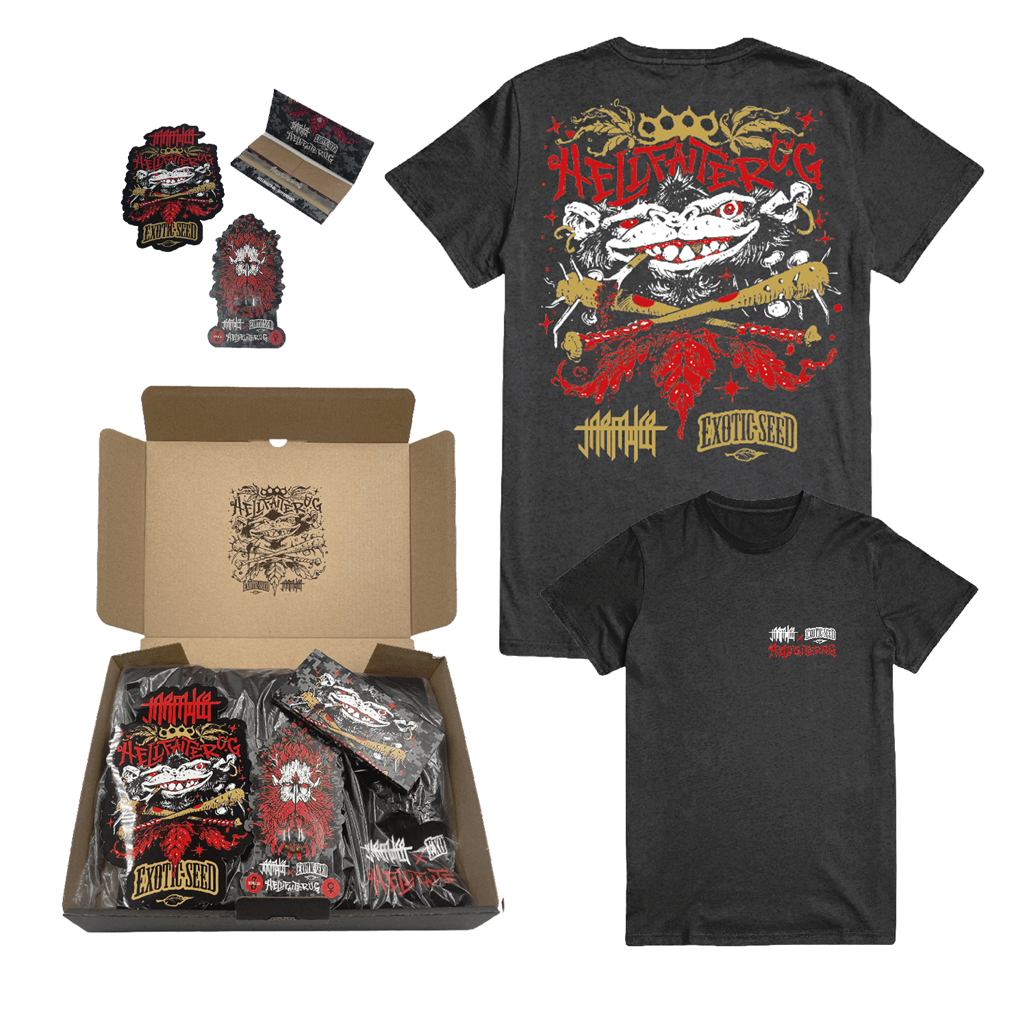 Esta caja incluye una selección exclusiva de semillas y merchandising de Hellfaiter OG, una genética elegida personalmente por Jarfaiter entre algunas de las mejores variedades de Exotic Seed. La variedad destaca por su gran producción de resina, aroma intenso y carácter potente, ofreciendo una genética con personalidad propia.